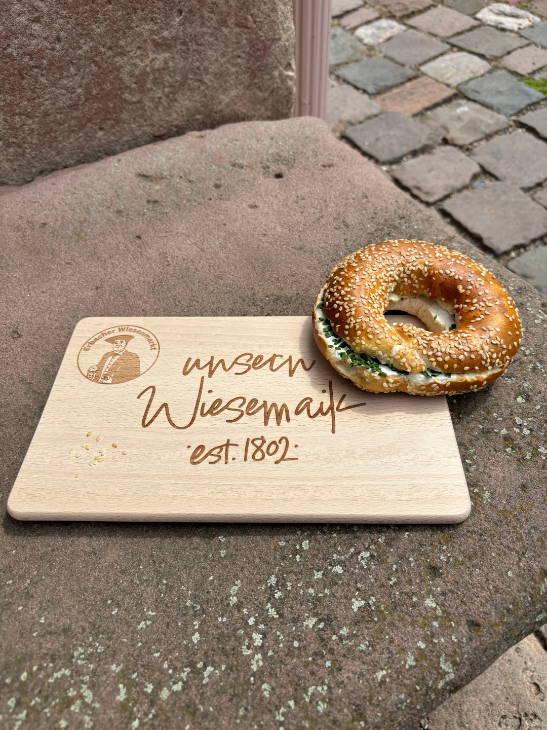 In diesem Jahr kommen weitere Artikel hinzu. So ist ein Holzbrettchen mit dem Wiesenmarkt-Bauern und dem Schriftzug „unsern Wiesemaik“ entstanden. Diese Brettchen können nicht nur im Odenwald-Laden am Marktplatz, sondern auch bei der Metzgerei Kirschschlager sowie der Metzgerei Glenz als Geschenkset mit Spezialitäten den beiden Fachbetriebe erworben werden.